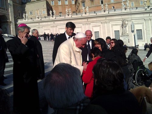 Francisco recebeu um grupo de pessoas com deficiência na Fundação ONCE e uma vez que , durante a audiência que o Papa realizada a cada quarta-feira. Entre a comitiva do grupo, uma menina deficiente visualqueria dar sua bengala branca para o Papa, para que ele se recusou dizendo que " ele que preferia ser um presente para abençoar o bastão "para" Eu estarei sempre com você e orientar em direção à luz ".